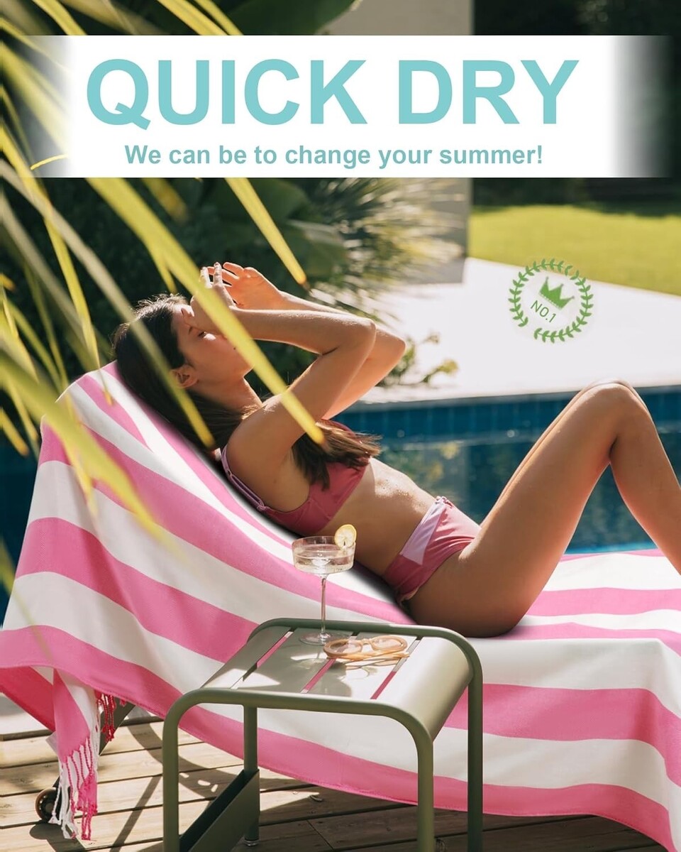 Extra Large Turkish Beach Towel Set - 74"x38" Quick-Dry, Multi-Stripe Colors