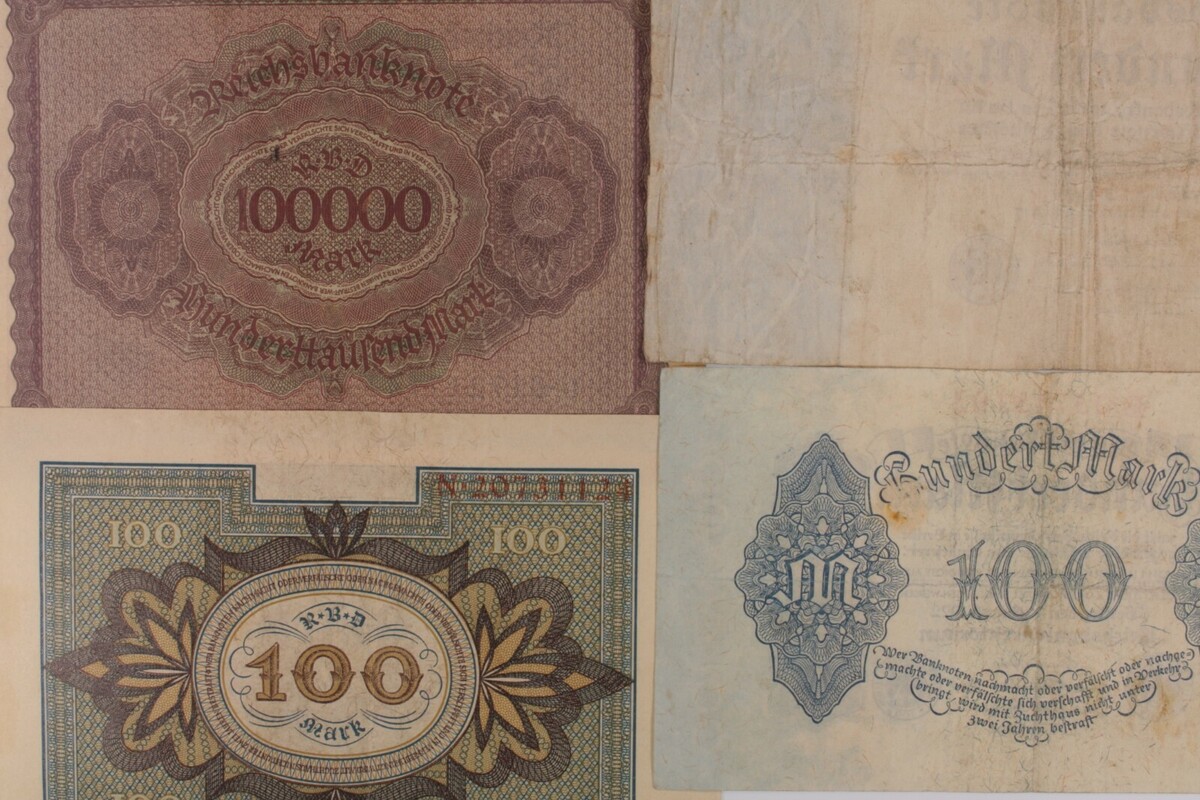 1920-1923 Germany 4-Notes Currency Set // Weimar Republic 100 500 100,000 Mark