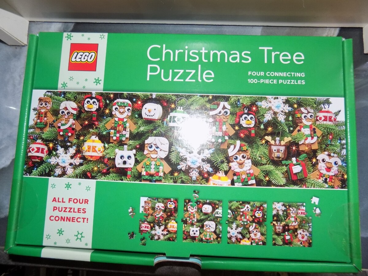 LEGO Christmas Tree Puzzle: Four Connecting 100-Piece Puzzles NEW