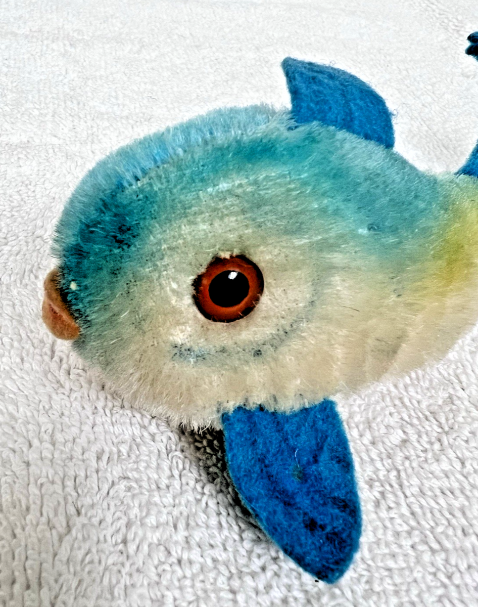 Vintage Steiff Mohair Straw Stuffed Tropical Blue Fish Flossy Germany 5". Flossy the Stieff tropical fish measures approx. 5 " long, no tag or button - can see where button was, no damage, holes or tears. Overall, very good used condition. See pictures.