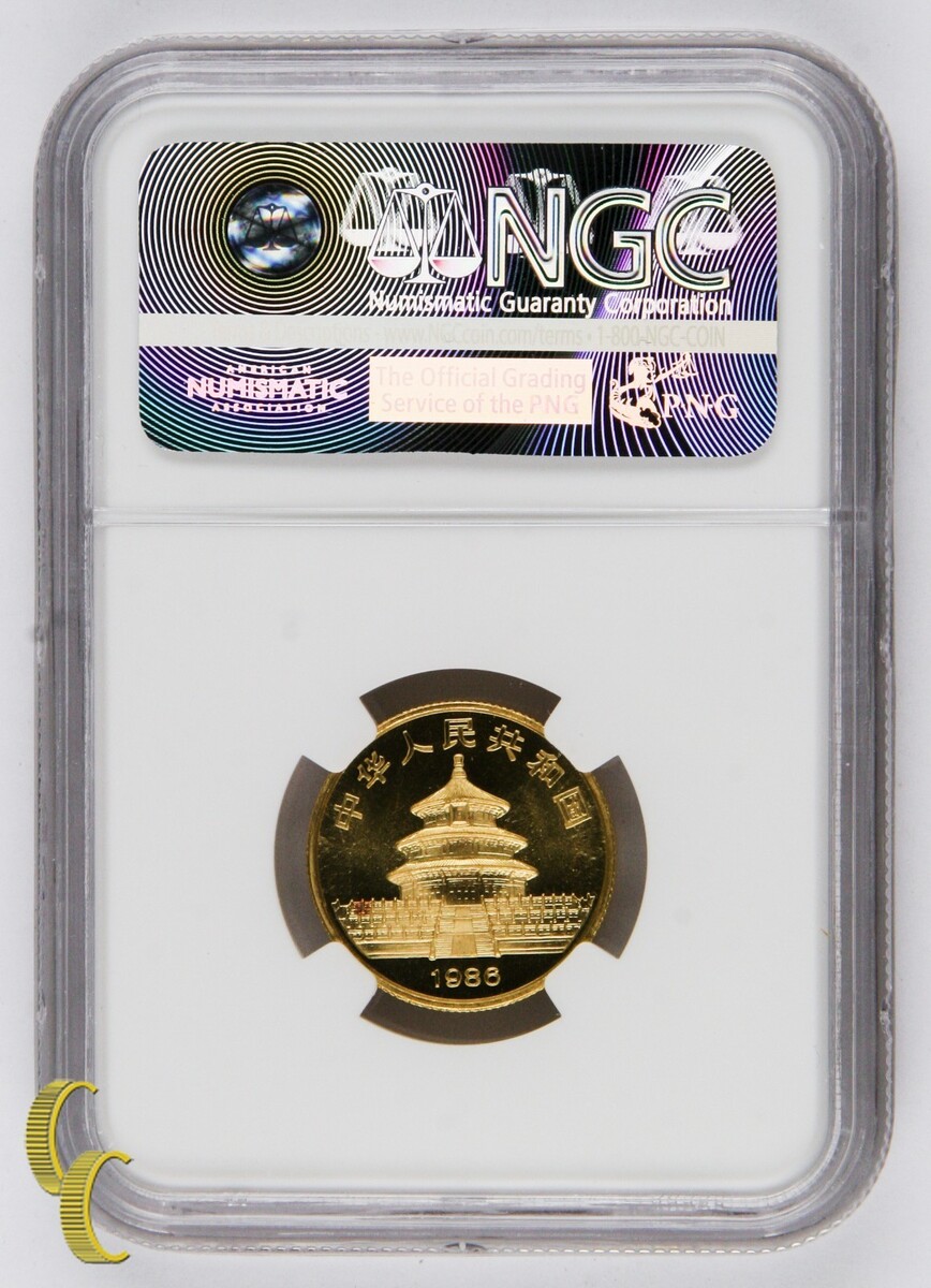 Panda Cinese D'Oro 1983 1/10 Oz 10 Yuan Graded Da NGC MS 69