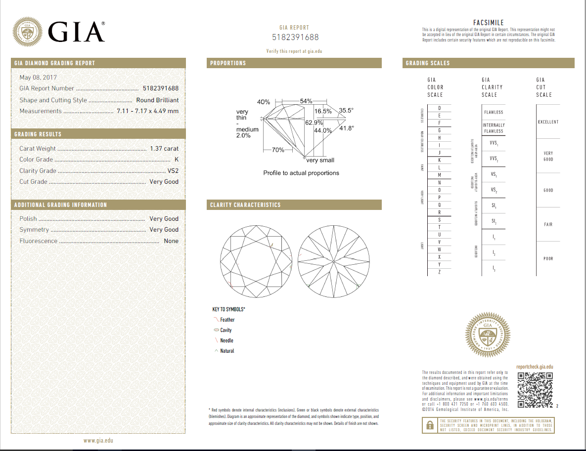 1.37 Carat Loose K / VS2 Round Brilliant Cut and 50 similar items