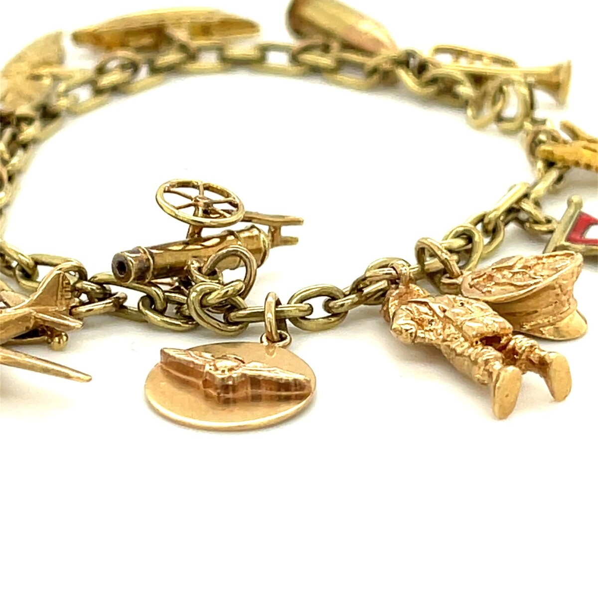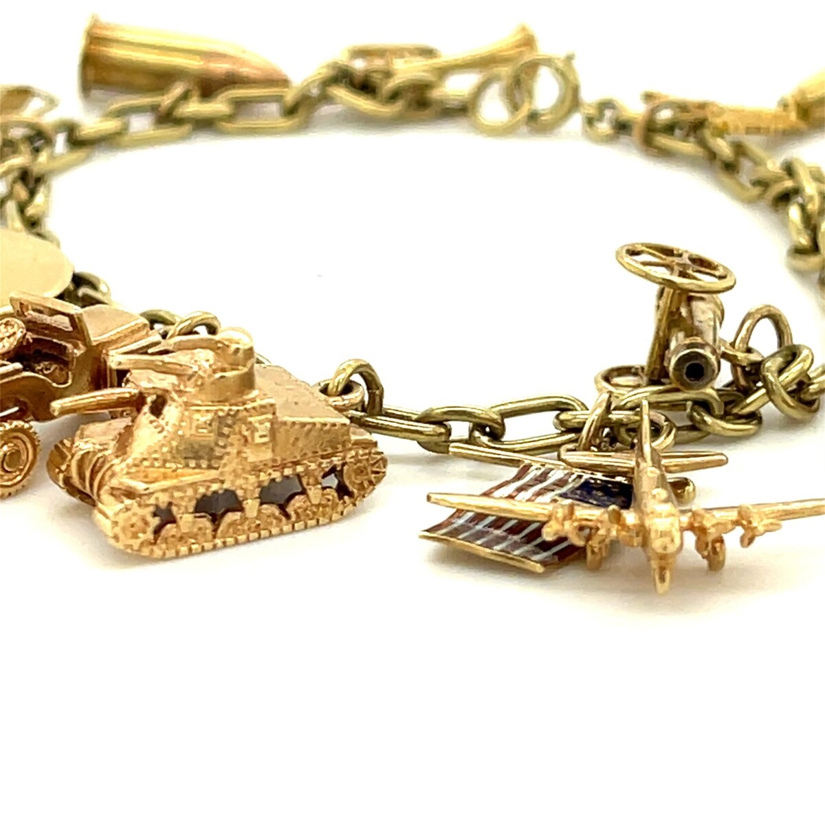 Charms Include Enamel Colored Flags, Fighter Pilot, Tank, Jeep, Other Military Symbols