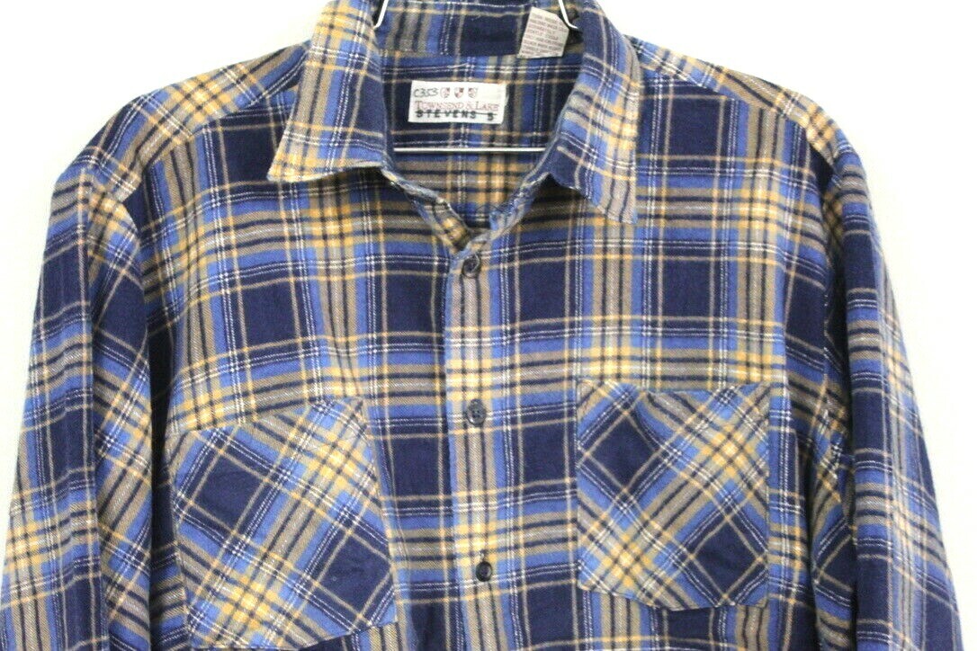 VTG 90s Townsend Lake Plaid Flannel Shirt Blue Gold Cotton Grunge Punk L