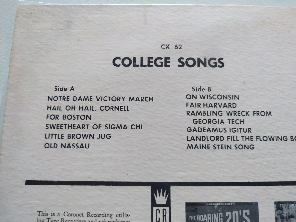 College Songs Coronet Studio Orchestra CX62 USA First Press LP 12 " vinyl VG/VG