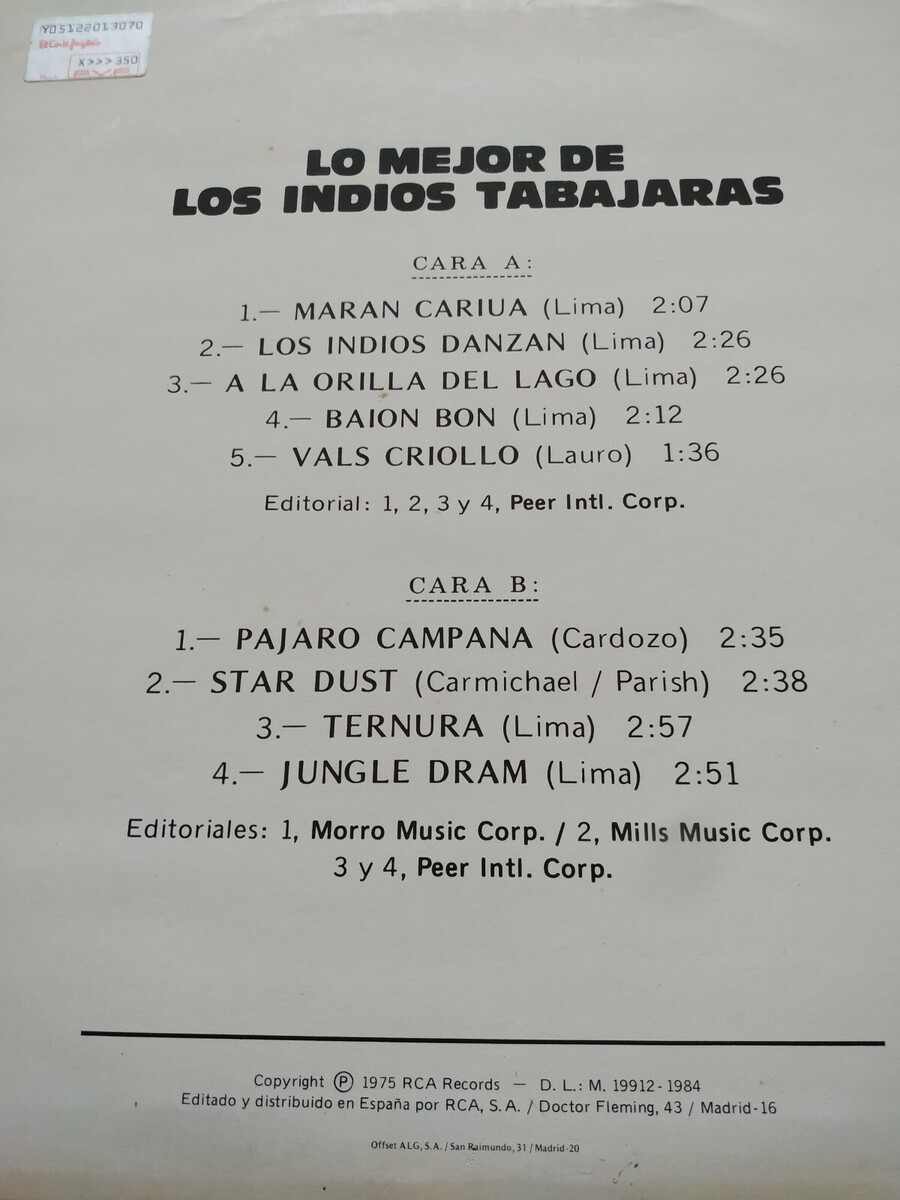 los indios Tabajaras Lo mejor exitos 1984 Mirlo CL-43187 - LP 12"vinyl - VG/VG