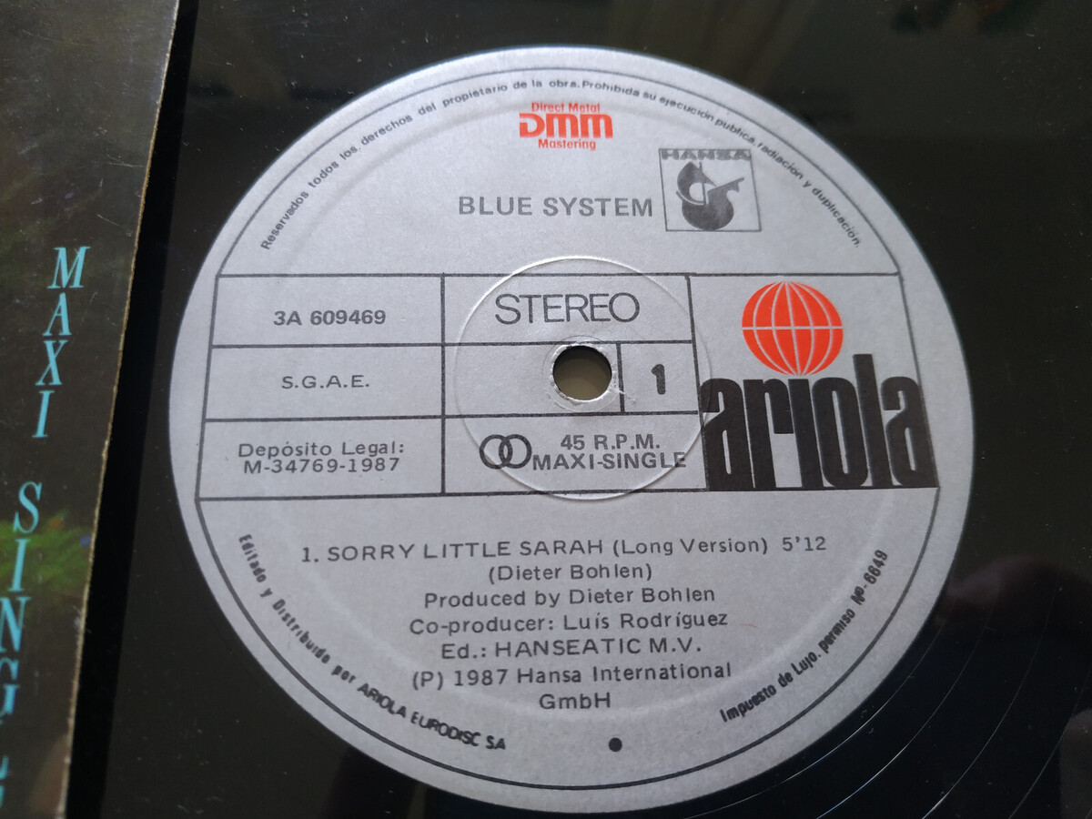 Blue System Sorry Little Sarah Hansa 1987 Spain Press - Maxi LP vinilo 12 "