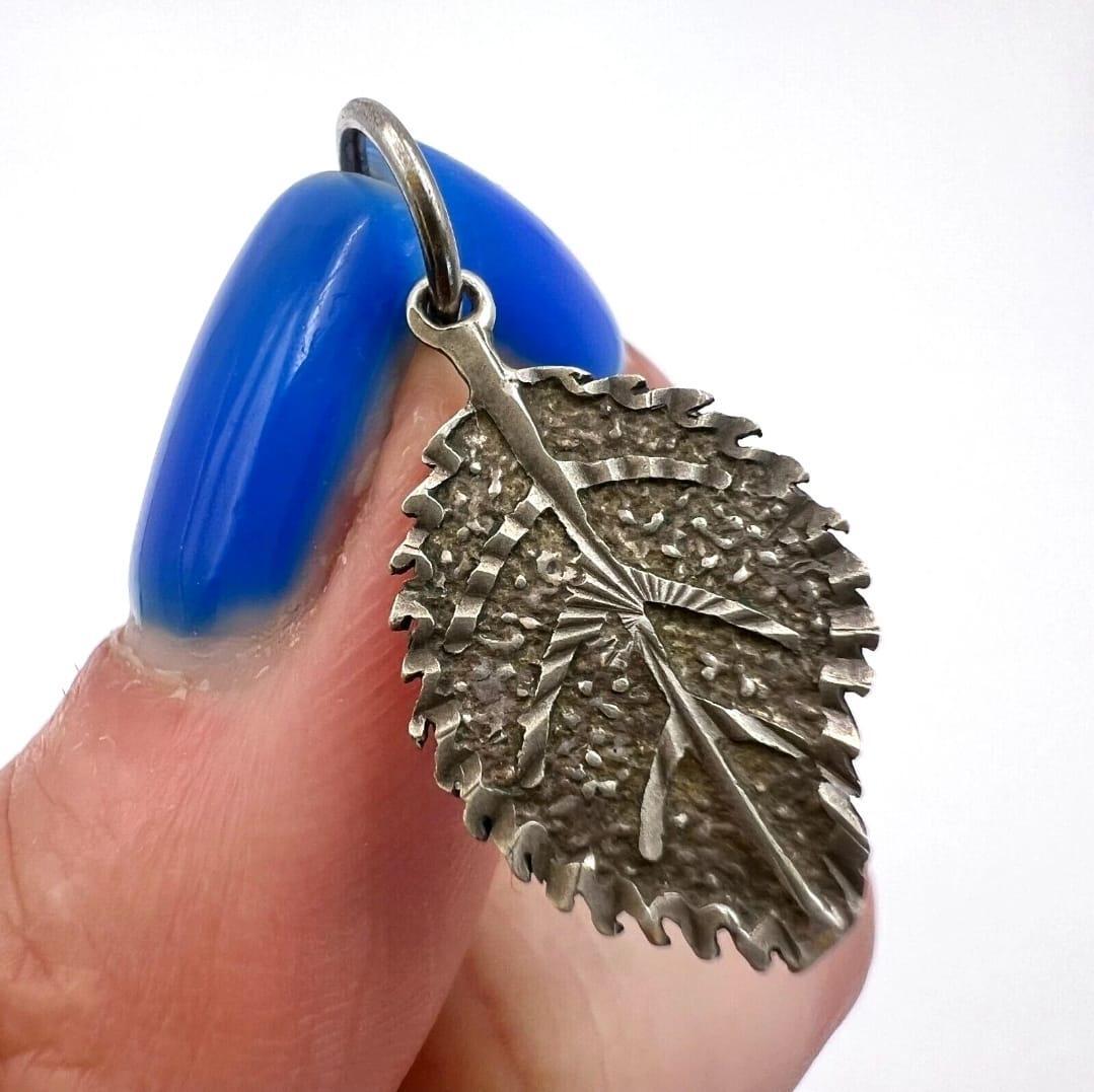 Unusual Vintage Jewelry Sterling Silver 925 leaf pendant