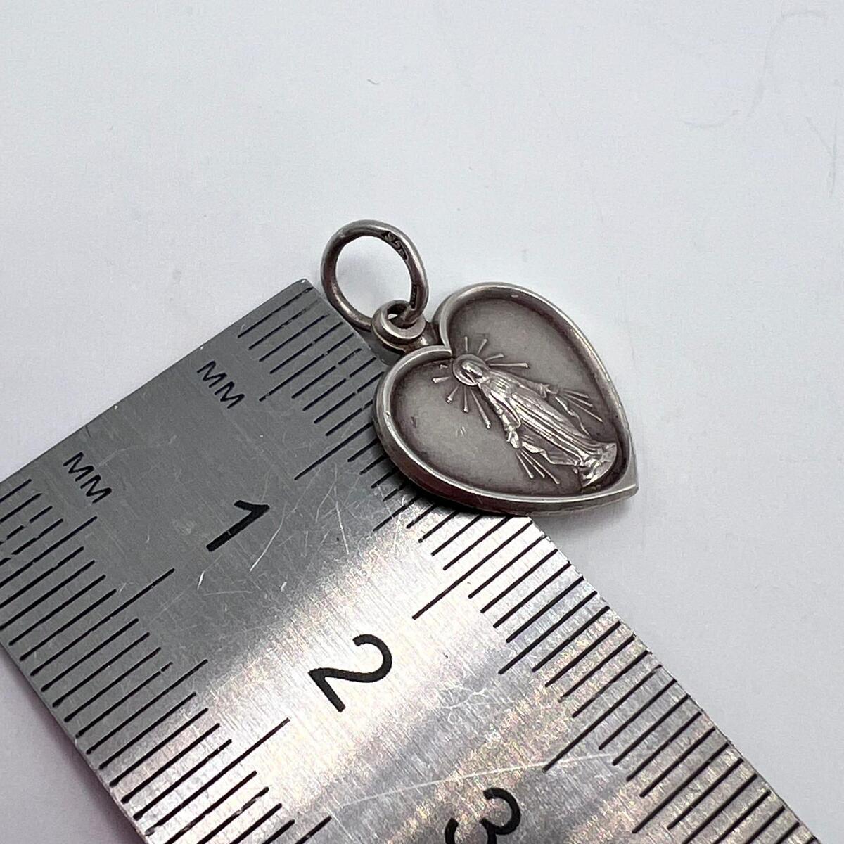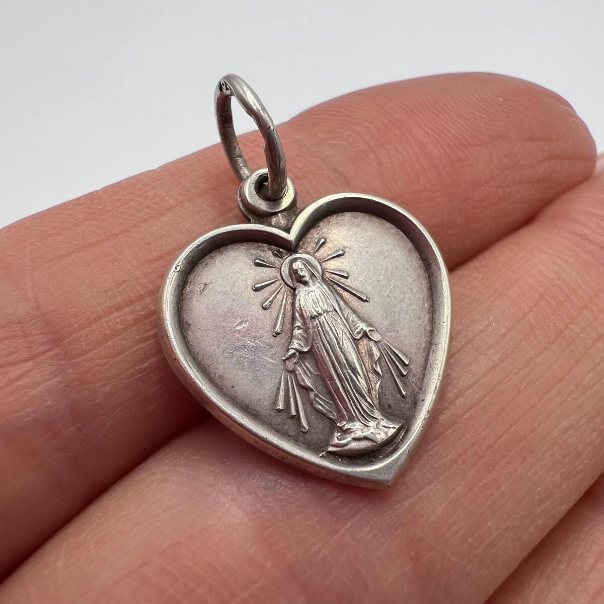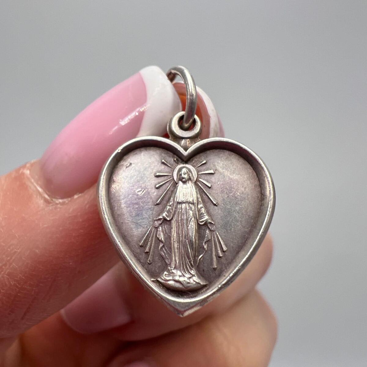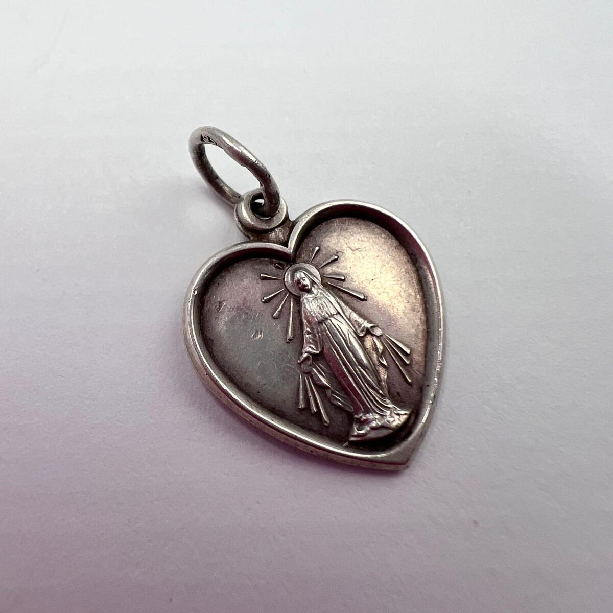 Vintage Sterling Silver 925 Heart Medal Pendant - Virgin Mary Religious Charm