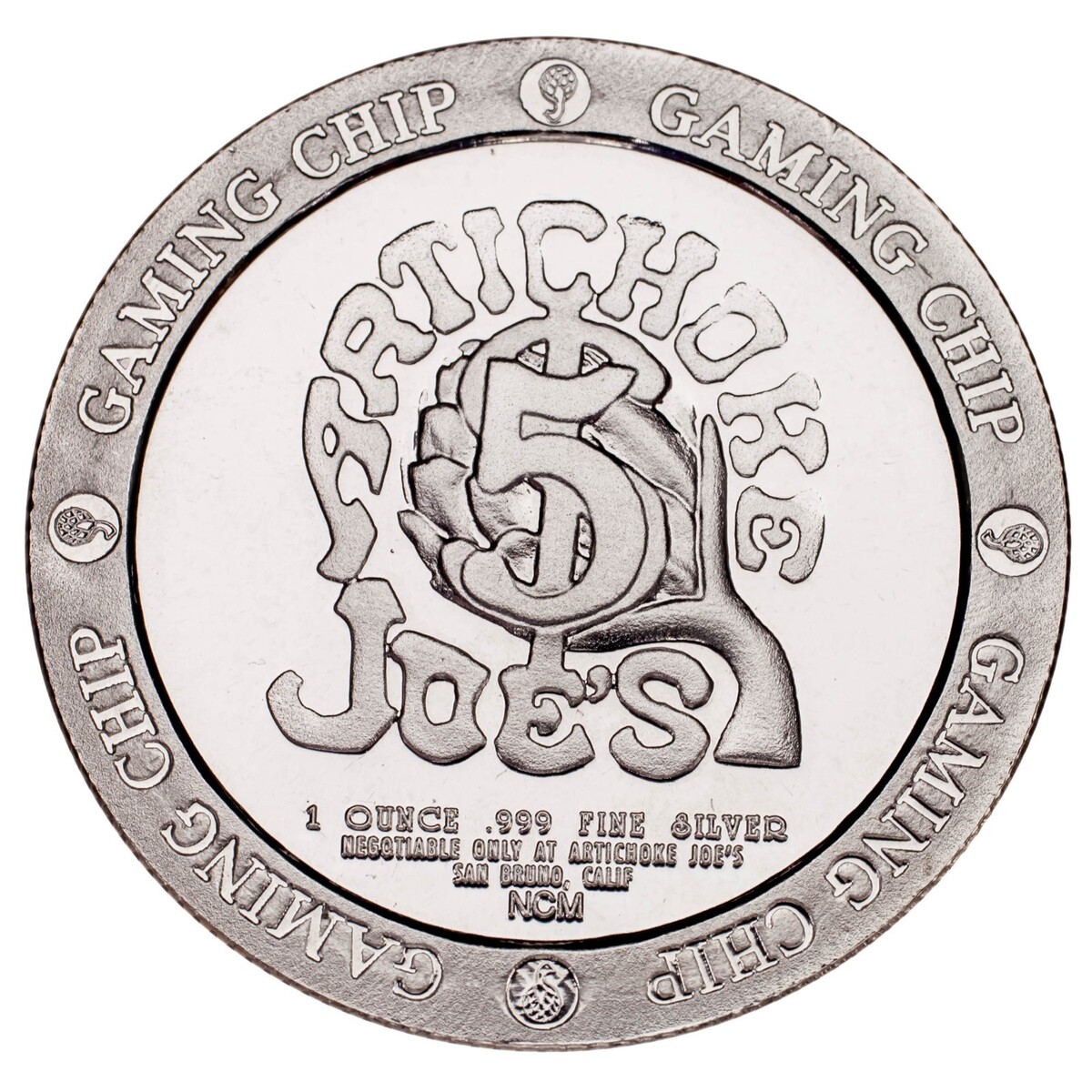 1993 Year of the Rooster .999 Silver 1 Ounce Gaming Round Artichoke Joe's Casino