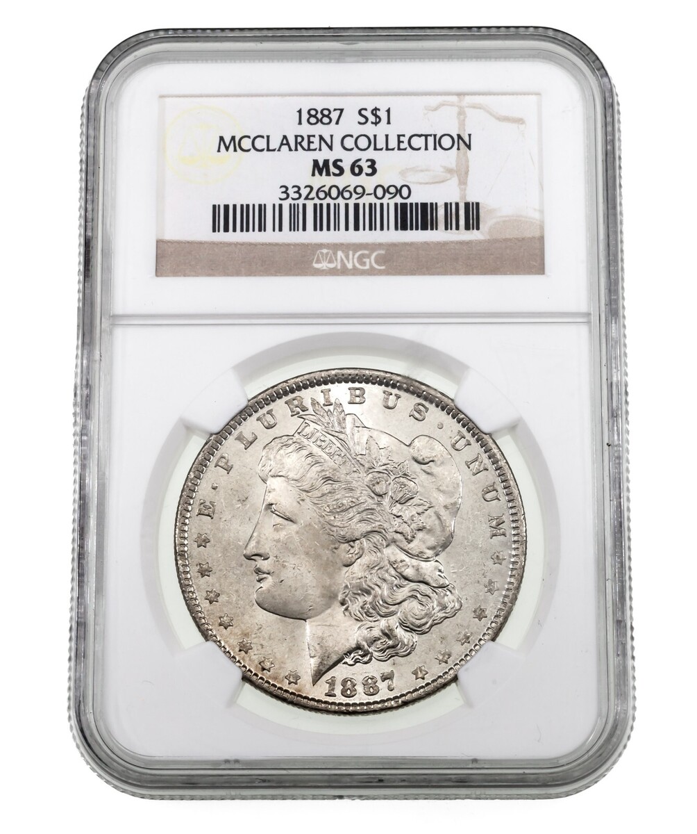 1887 Silver Morgan Dollar Graded by NGC as MS-63 McClaren Collection
