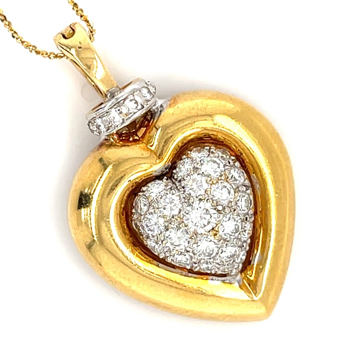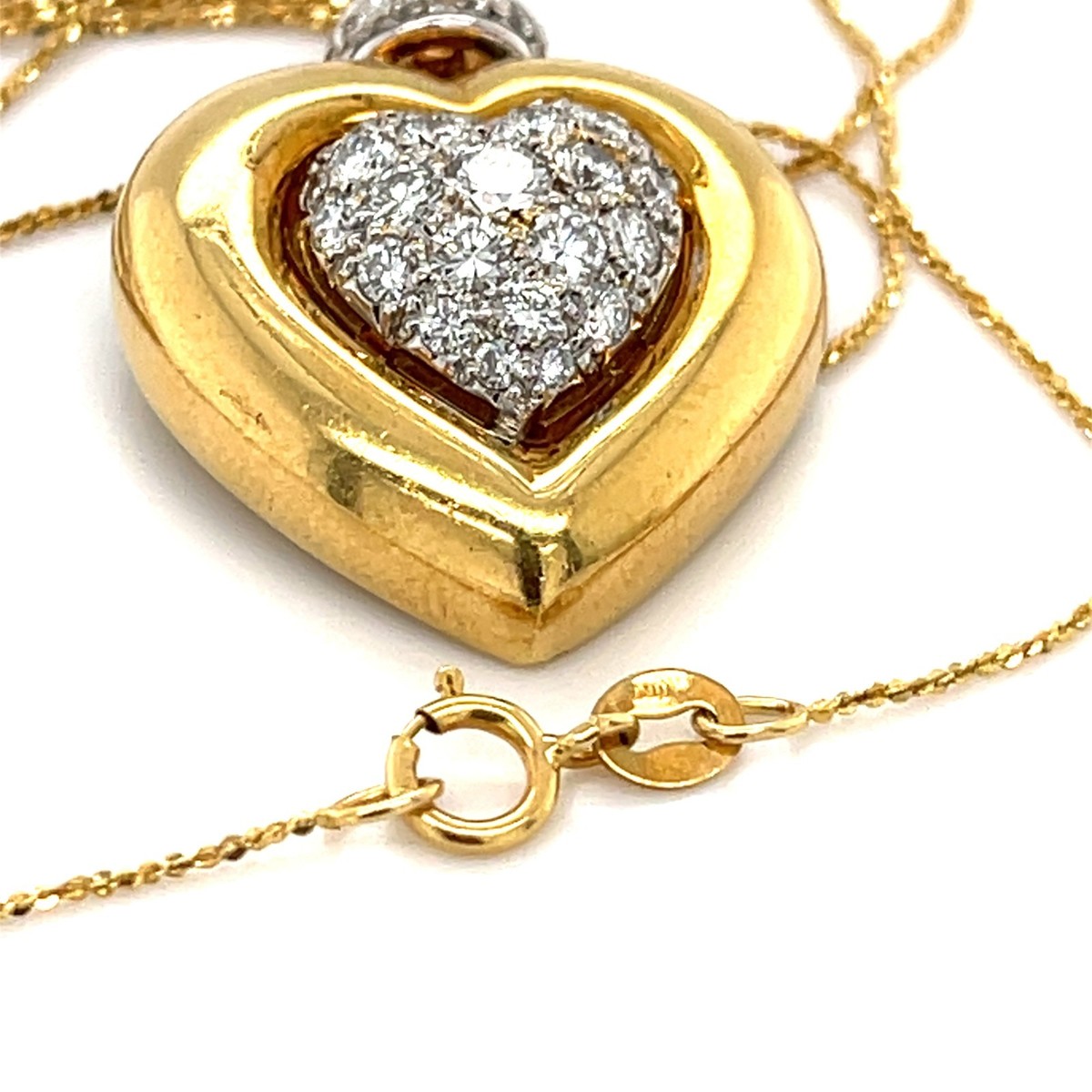 Beautiful 18k Yellow Gold and 1.2ct Diamond Heart-Shaped Pendant Necklace 21-1/4" 12.2g