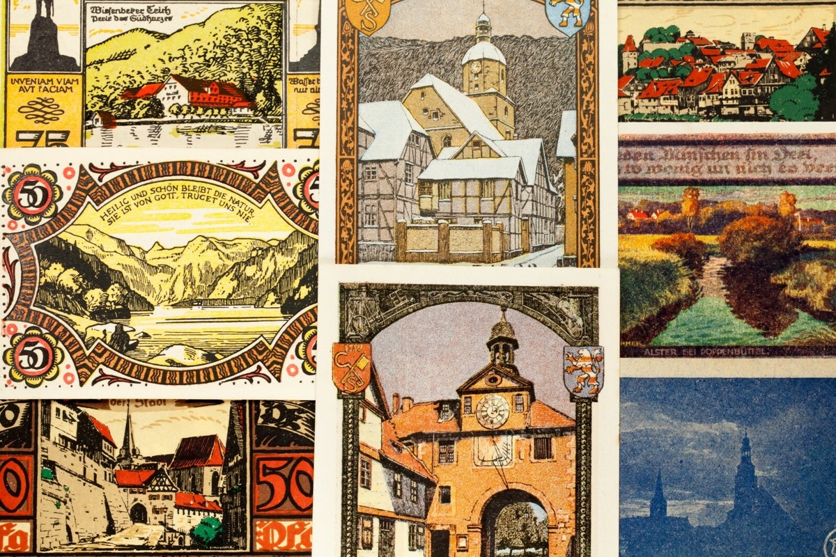 This lot will include 25 individual notgeld notes from Germany after World War I. All will be in Extra Fine to Uncirculated (XF-UNC) condition. Face values between 5 pfennig to 5 mark. City views theme; landmarks, famous buildings and landscapes.