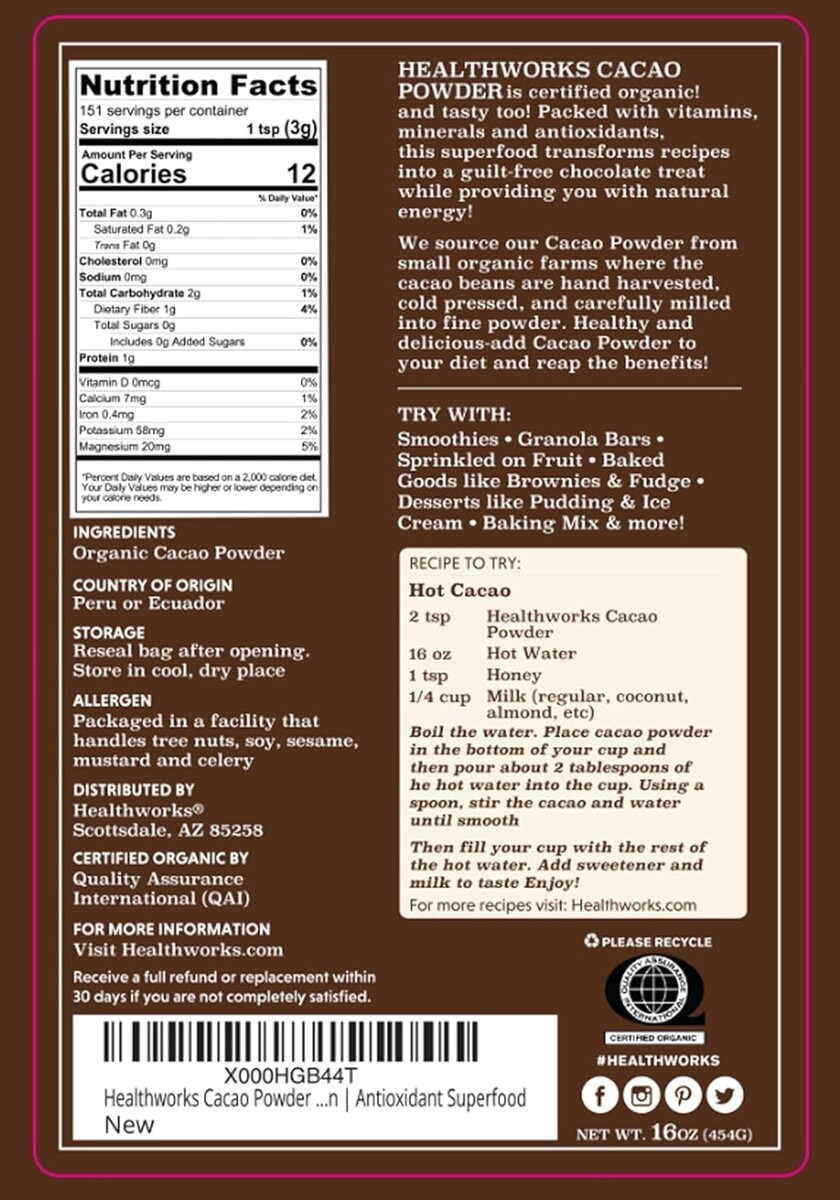 Organic Cacao Powder 16 Oz - Guilt-Free and 50 similar items