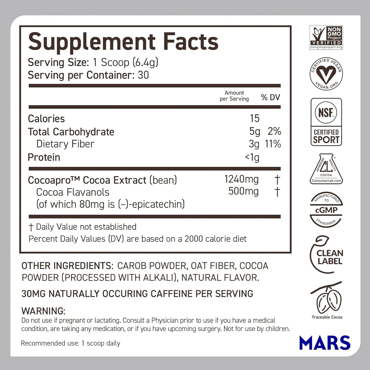 Cardio Health Cocoa Powder | 30 Servings of 500mg Flavanols for Heart Wellness