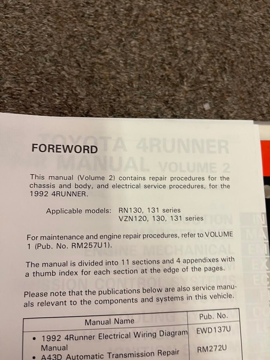 1992 Volume Manuale di servizio Toyota 4Runner 1