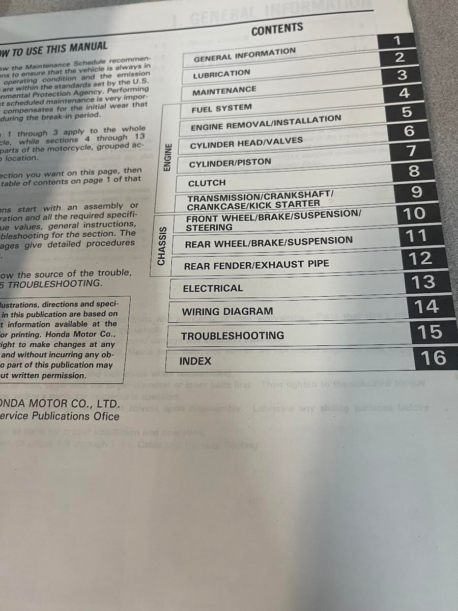 Questo manuale e pubblicato da Honda e sono gli stessi manuali che i meccanici/tecnici Honda usano presso la concessionaria quando serve la bici