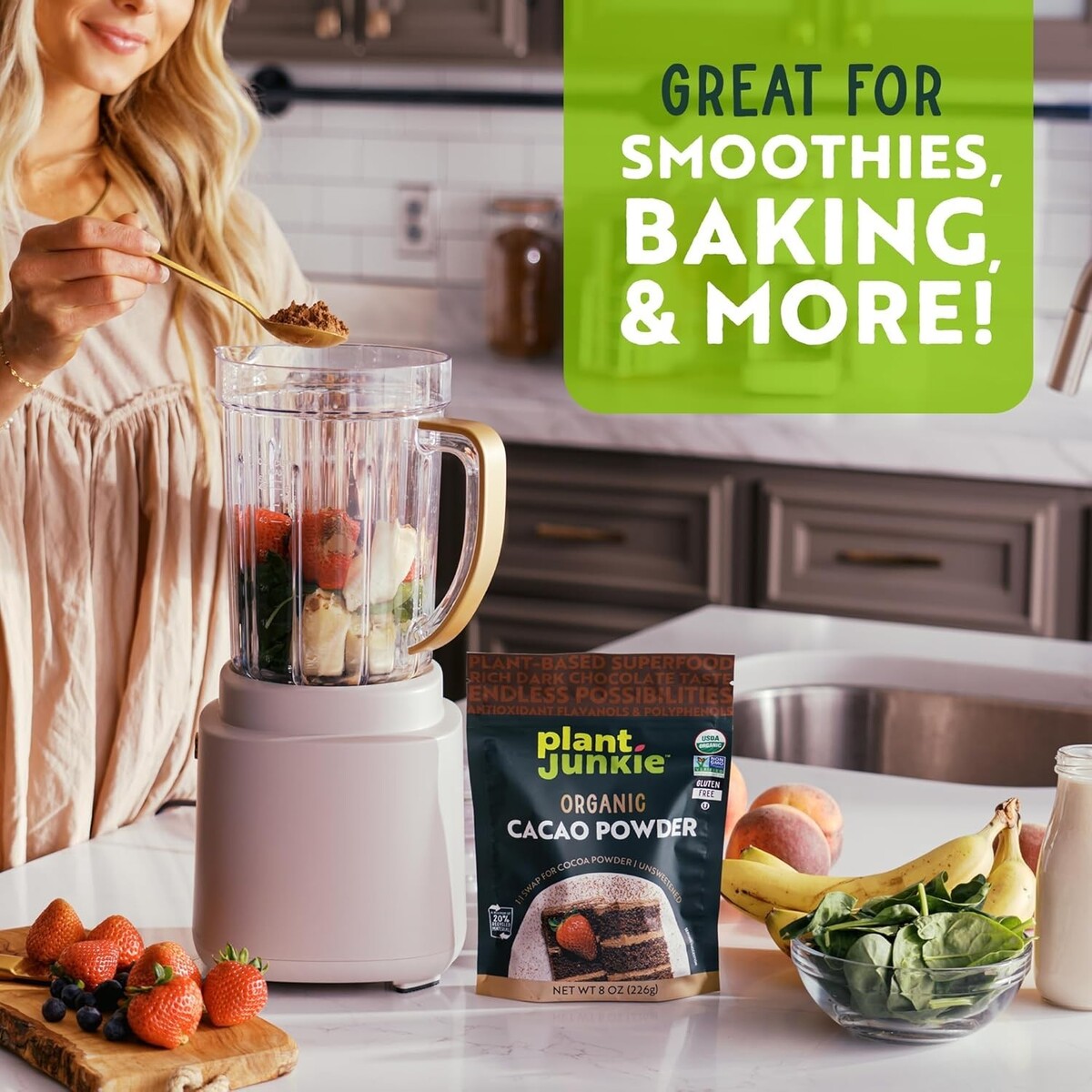 From baking decadent brownies to blending luscious smoothies, shakes, or hot drinks, our organic cacao powder is your essential pantry staple. It infuses bold, rich chocolate flavor into every creation, making the possibilities boundless?elevate your desserts, snacks, and beverages with the delightful essence of organic cacao.