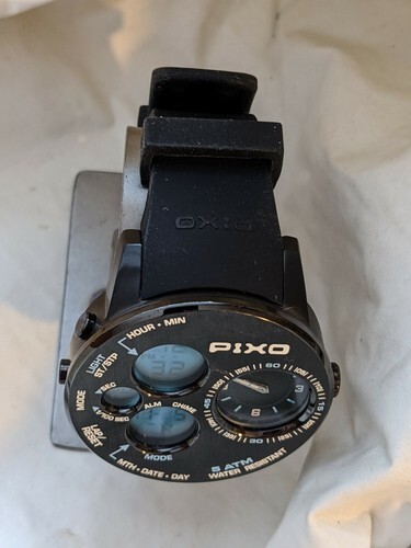Zum Verkauf steht eine neuwertige Pixo PX-5 SBBK-08 schwarze Herren-Digital-Analog-Großuhr.