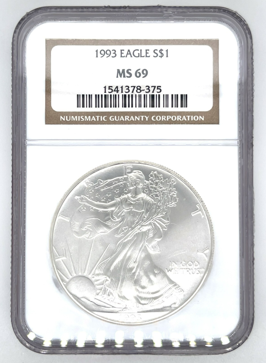 1993 S $ 1 1 Oncia Americana Argento Aquila NGC MS69 - Luminoso Bianco, Ottimo