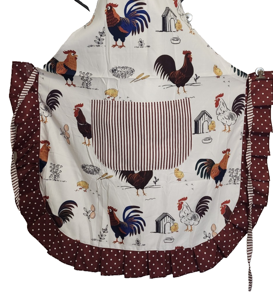 Apron with Pocket Rooster Pattern Kitchen Large Country
