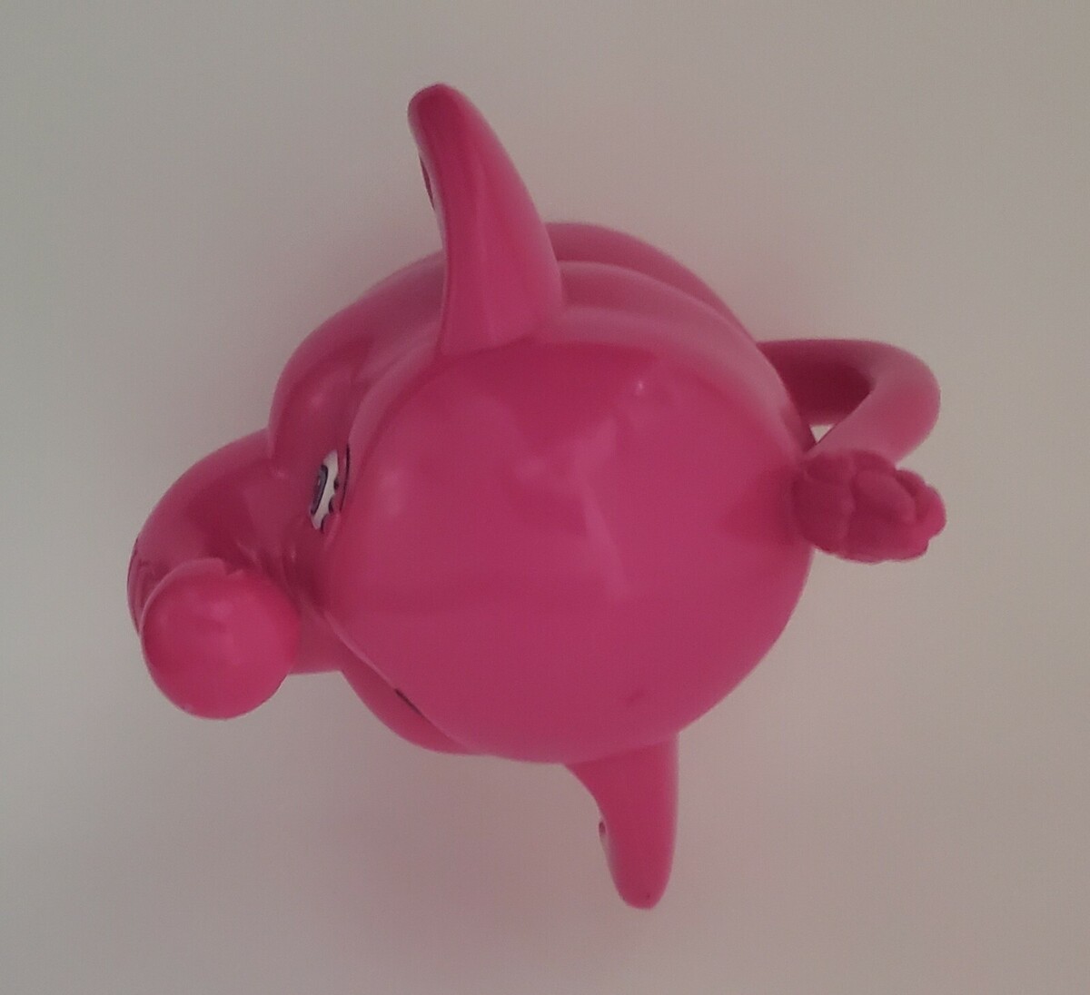 Ringling Bros. Barnum Bailey Circus three-dimensional Pink Elephant Flip-Lid Mugs measure five and three-quarter (5.75?) inches tall by six (6.00?) inches in diameter by seven and one-half (7.50?) inches (nose to tail ). The top opening measures Three (3.00?) inches across and the handle opening is one (1.00?) inch wide and features a three-dimensional design. The Mug has a pink base color with light pink ear inners and blue eyes manufactured for the Feld Entertainment Company in 2001 using durable plastic material is three-dimensional