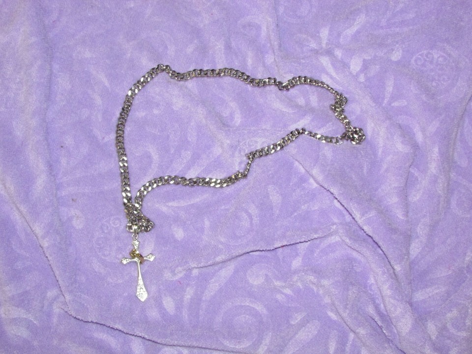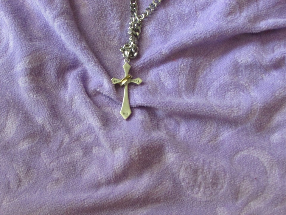 silver color CROSS w/gold color RING pendant and similar items