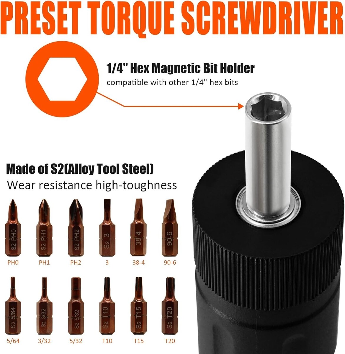 12pcs Bits, 1pc Preset Torque Screwdriver |