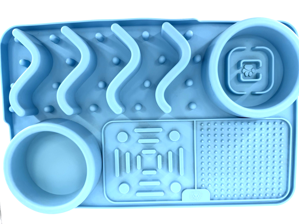 Dog Lick Mat Slow Feeder Silicone Enrichment Tray Bule Puzzle Feeding Mat