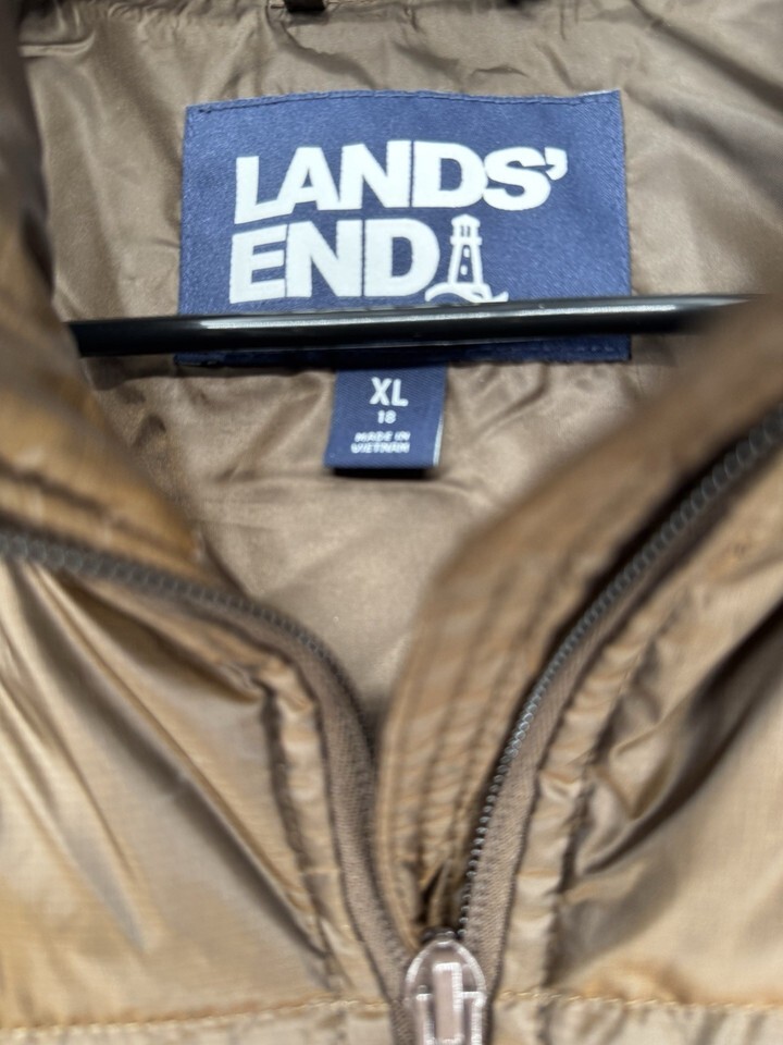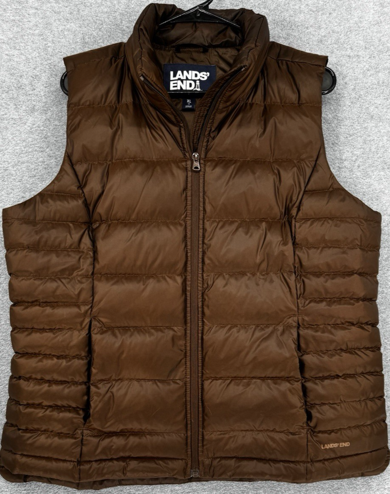 LANDS END Women’s Chocolate Brown Quilted Puffer Vest Full Zip Size XL 18
