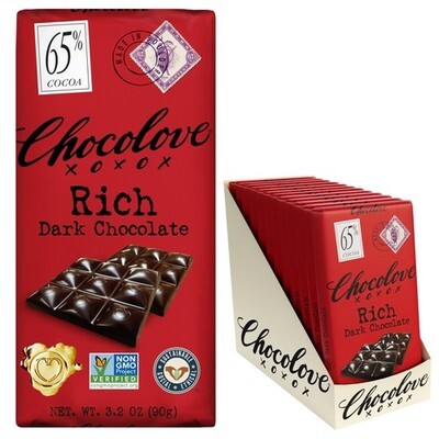 2/27 Chocolove Rich Dark Chocolate Bars | 65% Cocoa | Crafted with Semi-sweet Premium Chocolate| Non GMO, Rainforest Alliance Certified, 3.2oz Bar (12 Pack)