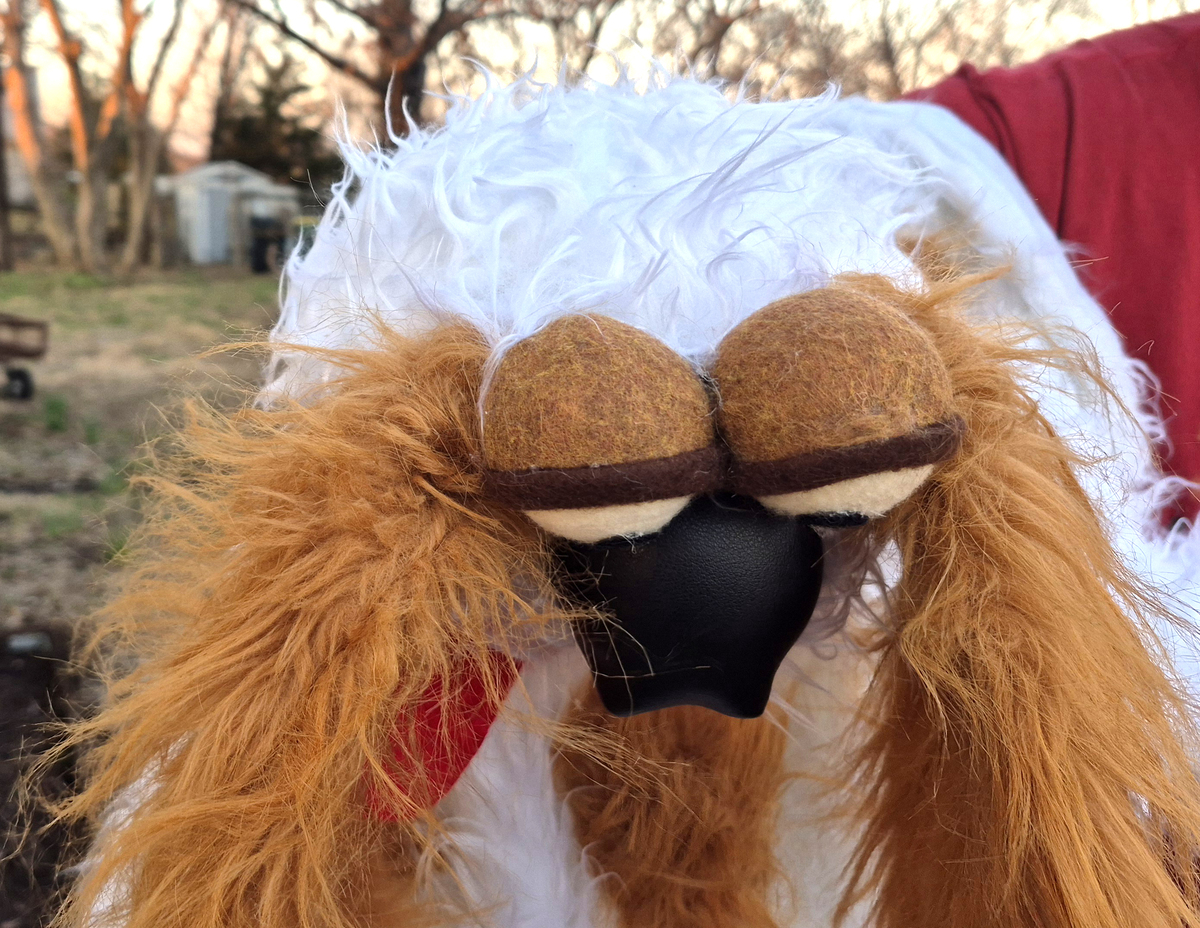 MATERIALS: The head construction is from 1/2" foam. The fabric is white brown fur