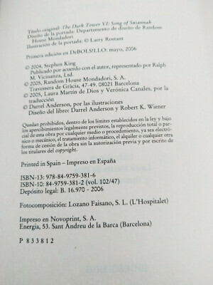 Cancion De Susannah La Torre Oscura Vi STEPHEN KING 2006 - Libro Español Am