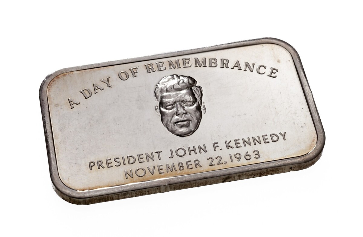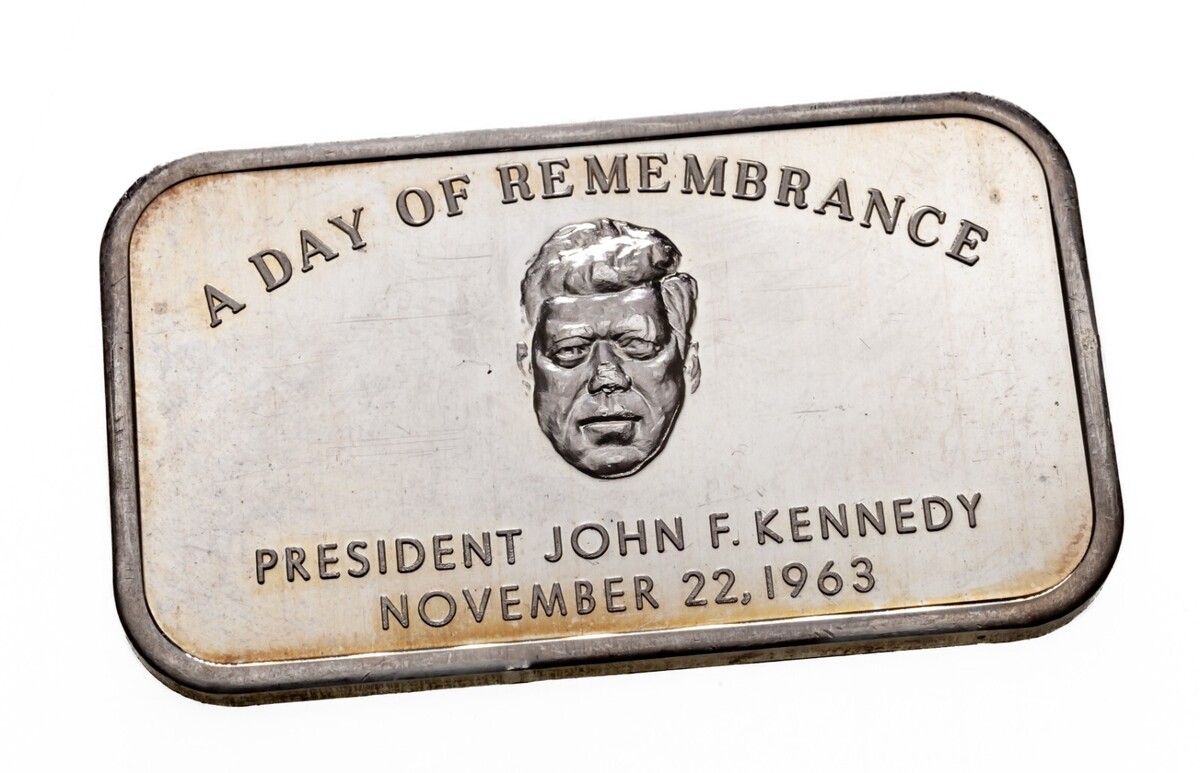 1973 John F. Kennedy A Day of Remembrance di Colonial Mint 1 oz. Silver Art Bar