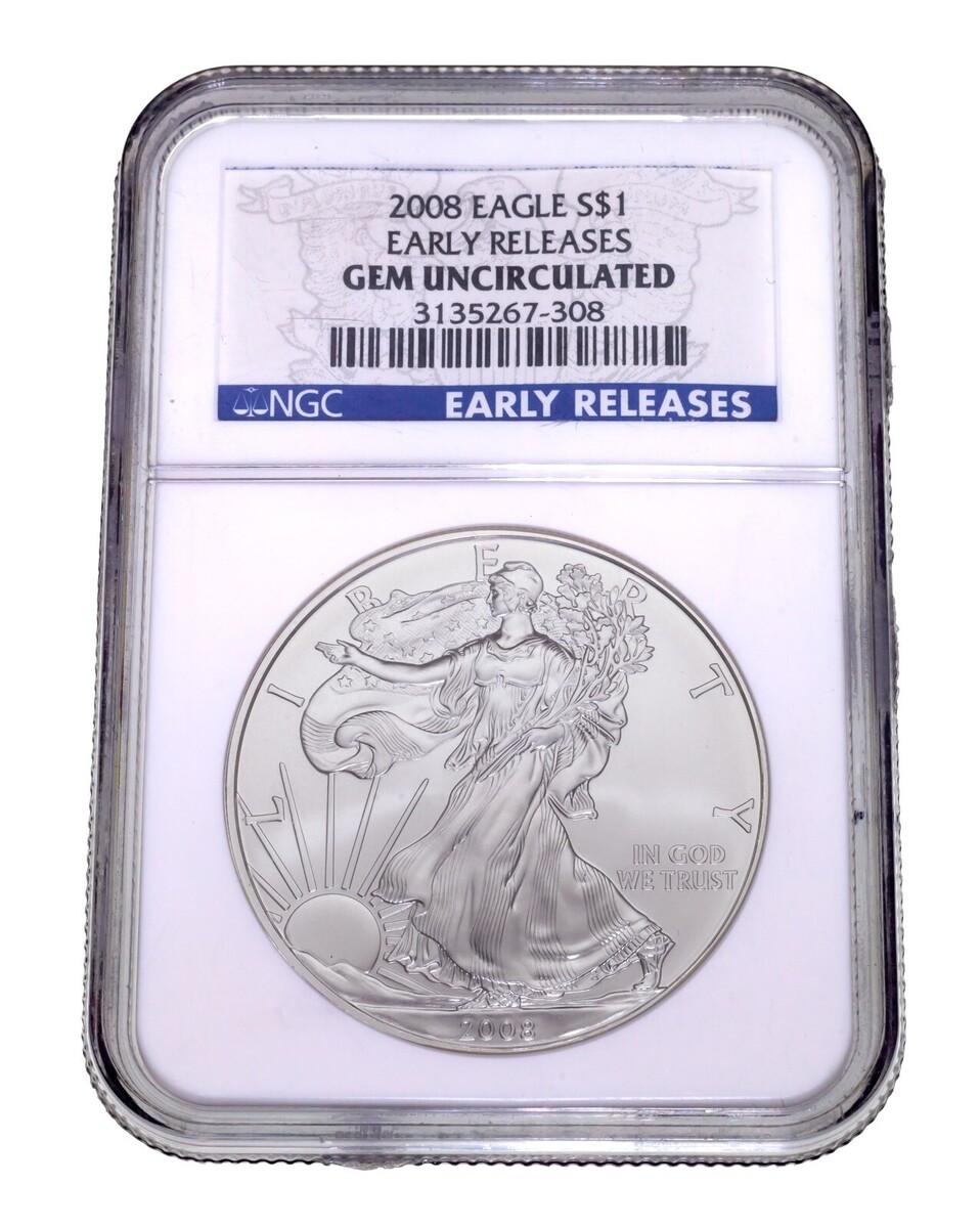 2008 Silber American Eagle Ausgewählten Von NGC As Gem Handgehoben Frühe Frei