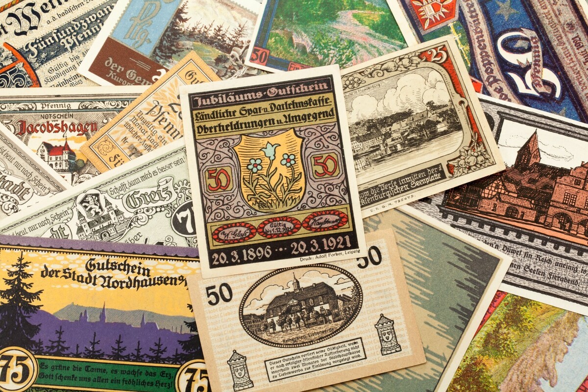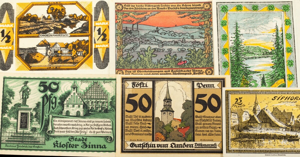 Este lote incluira 25 billetes notgeld individuales de Alemania despues de la Primera Guerra Mundial. Todos estaran en condiciones Extrafinas a Sin circular (XF-UNC). Valores nominales entre 5 pfennig y 5 marcos. Tema de vistas de la ciudad; monumentos, edificios famosos y paisajes.