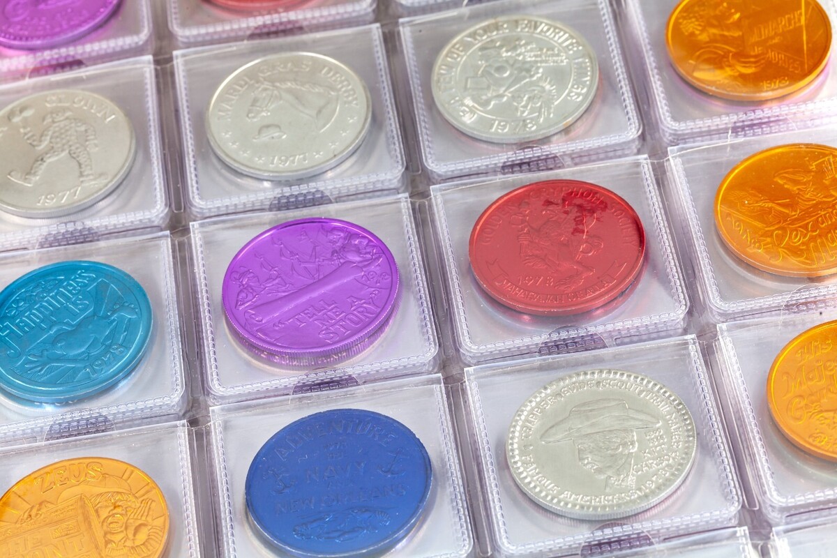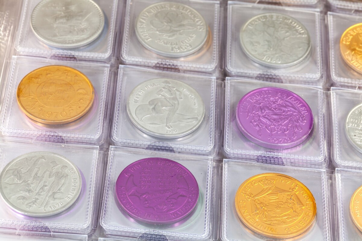 Rari dobloni del Mardi Gras degli anni '60 -'90, collezione di gettoni in alluminio di 246!
