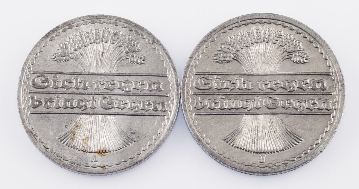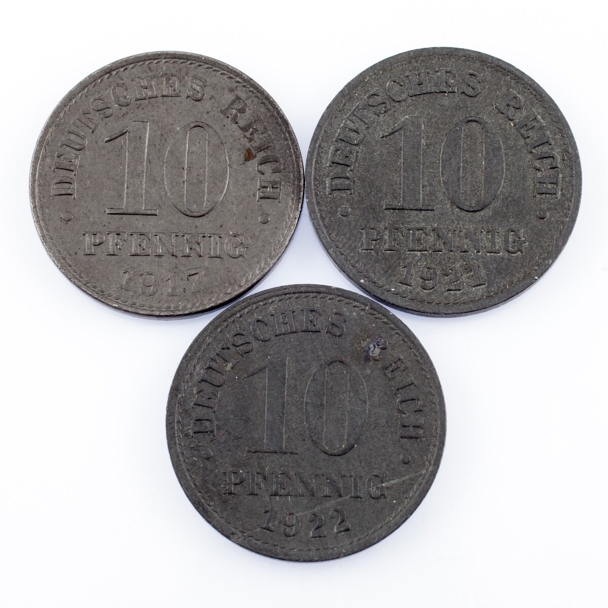 Lot von 6 Münzen des Deutschen Reiches und der Weimarer Republik (1910 - 1922 10 Pf - 50 Pf)
