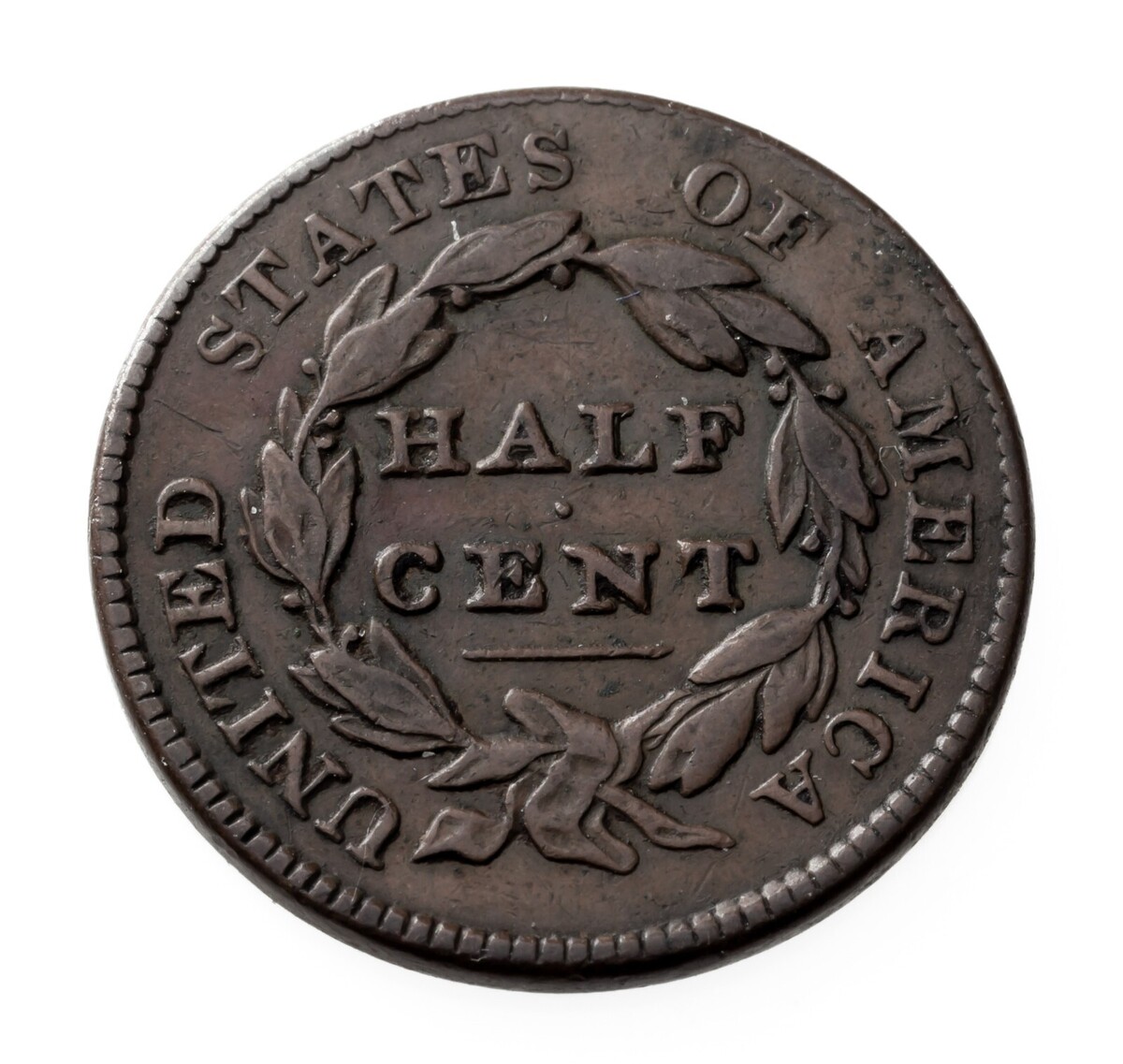 1828 13 Stars Medio Centavo En Muy Fina MB Estado, Marron Color, Bonito Detalle