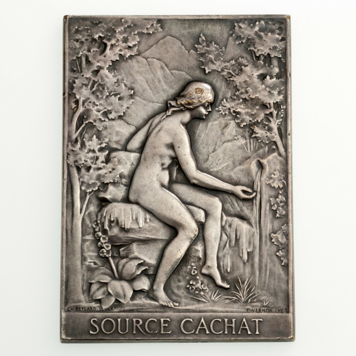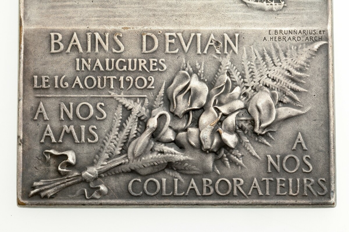 Rep. di Francia 1902 BAINS D'EVIAN/SOURCE CACHAT Medaglia di bronzo con rivestimento in argento di. F. Vernon