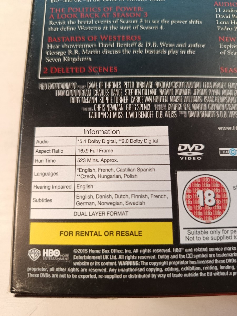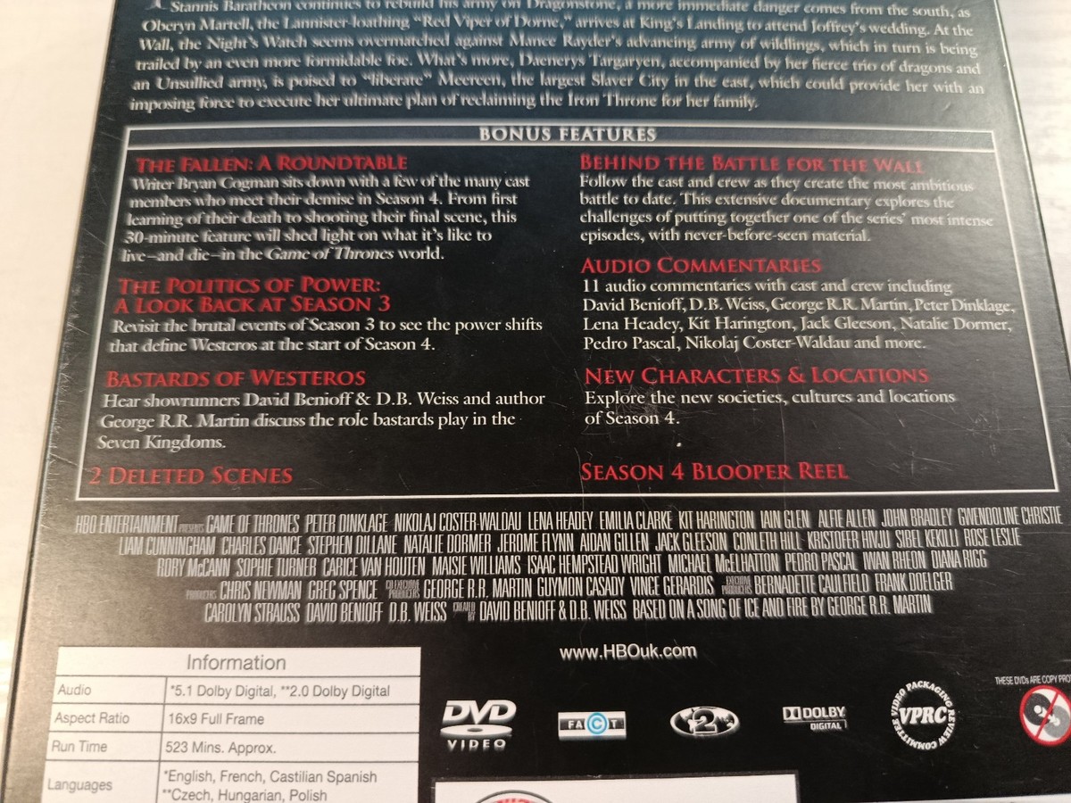 Game of Thrones Season 4 Complete - 5 DVD Spanish English French Reg 2