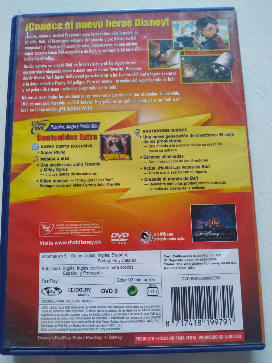 Bolt John Travolta Miley Cyrus WALT DISNEY - DVD Español Inglés Am