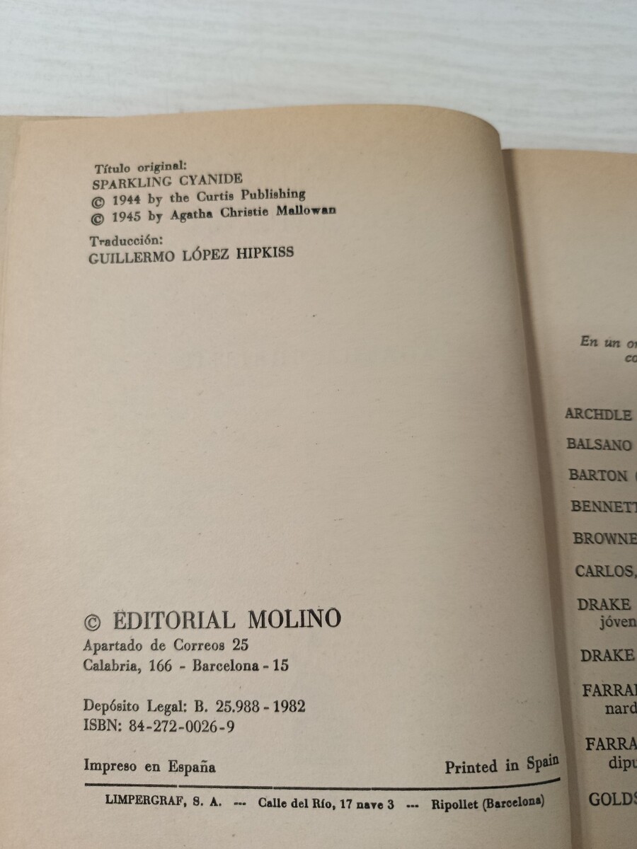 Sparkling Cyanide Agatha Christie (Molino 1982) - BOOK Spanish Am