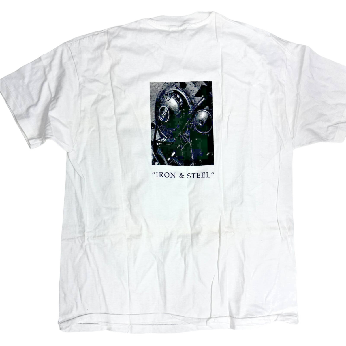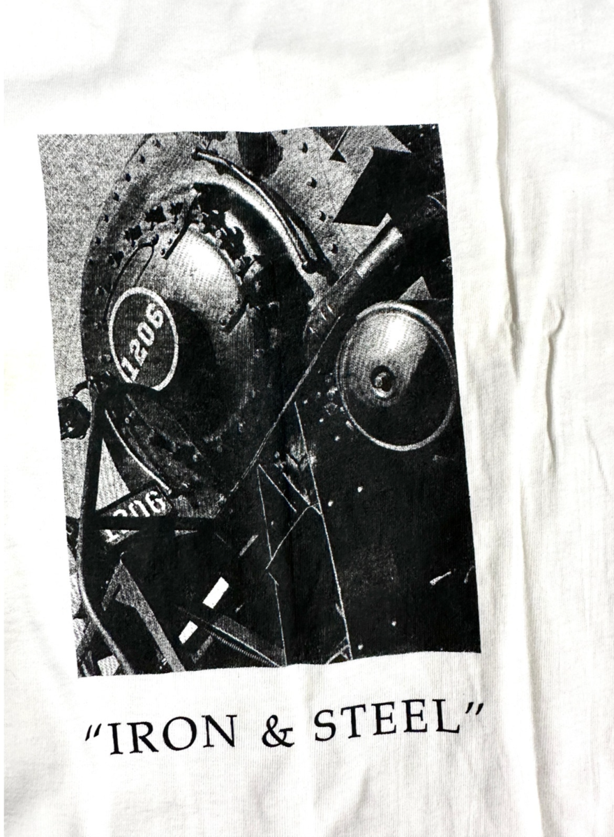 Vtg 1980s Robert Comstock graphic T-shirt, distributed at a Bloomingdale?s event, featuring a bold locomotive / industrial brutalist design on the back. Single-stitch construction, 100% preshrunk cotton, made on a Hanes tee.
