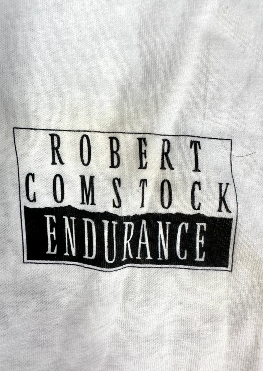 Robert Comstock is a U.S. designer who rose to prominence in the 1980s for luxury outerwear and limited design collaborations. Event-exclusive promotional T-shirts like this one were produced in very small runs for Bloomingdale?s showcases and are rarely found today, especially in unworn condition. The single-stitch construction and dated graphic confirm its late-80s origin.