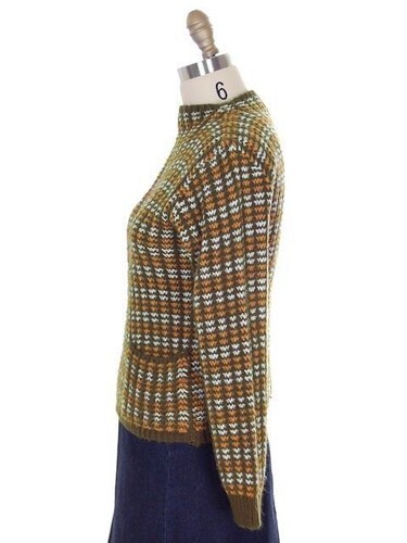Vtg 50s 60s Rosanna Olive Green Plaid Knit Sweater Orlon Acrylic Funnel Neck