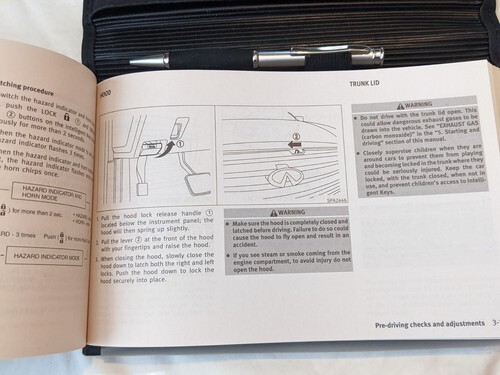 In vendita e un set di custodie per guida di navigazione manuale del proprietario Infiniti M35 M45 del 2009 usato con 2 portachiavi.