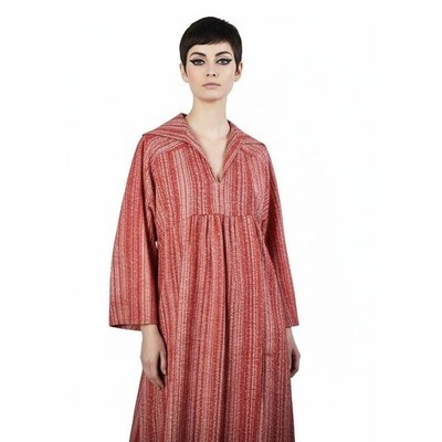 VTG 1970s Marimekko Finland Red & Cream Mini Print Cotton Maxi Dress S