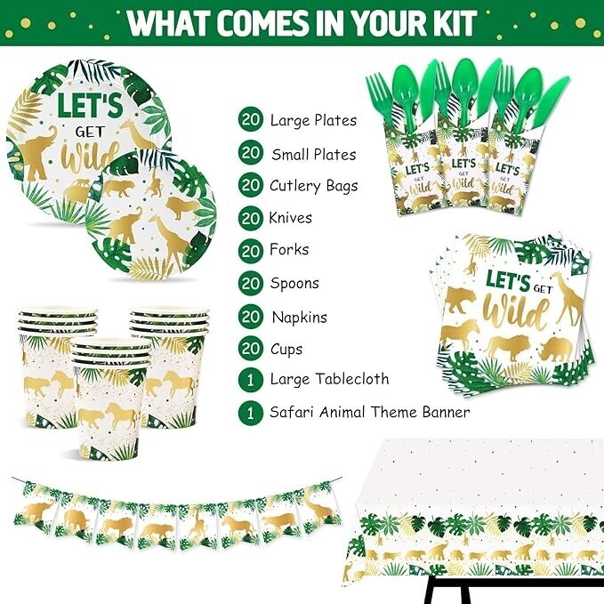 Golden Jungle Animal Cup and Tray Kit Safari Animal Party Supplies Party Dinnerw