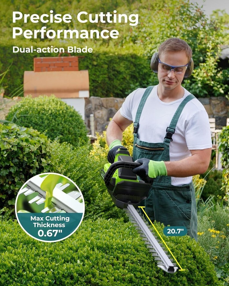 Docsmart 20'' Hedge Trimmer Cordless with Battery, 3000RPM Electric Green